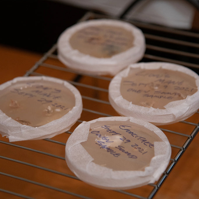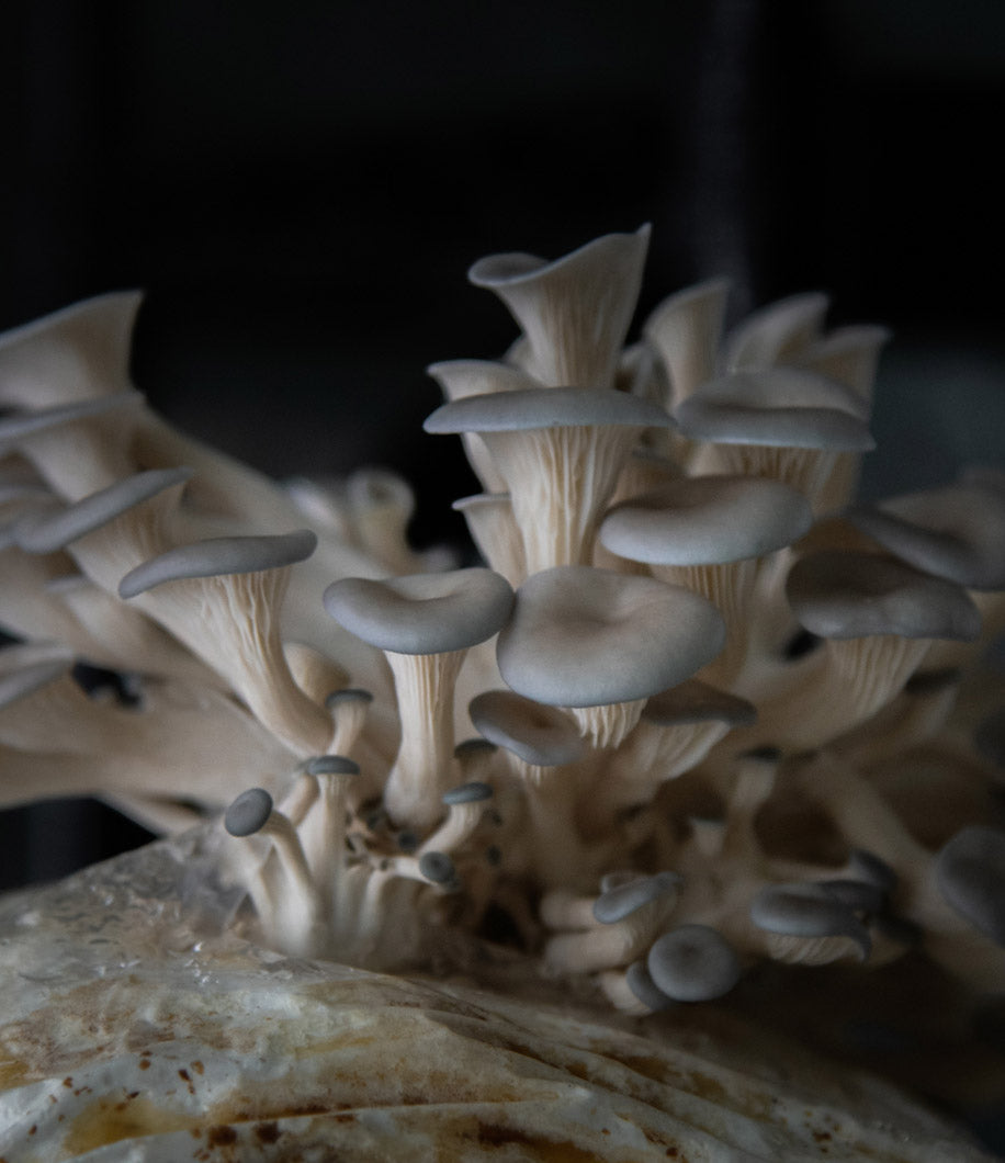 We introduce our cultures to pure, clean Canadian hardwood, then supplement that wood with a gourmet blend of certified organic flax and sunflower meal.